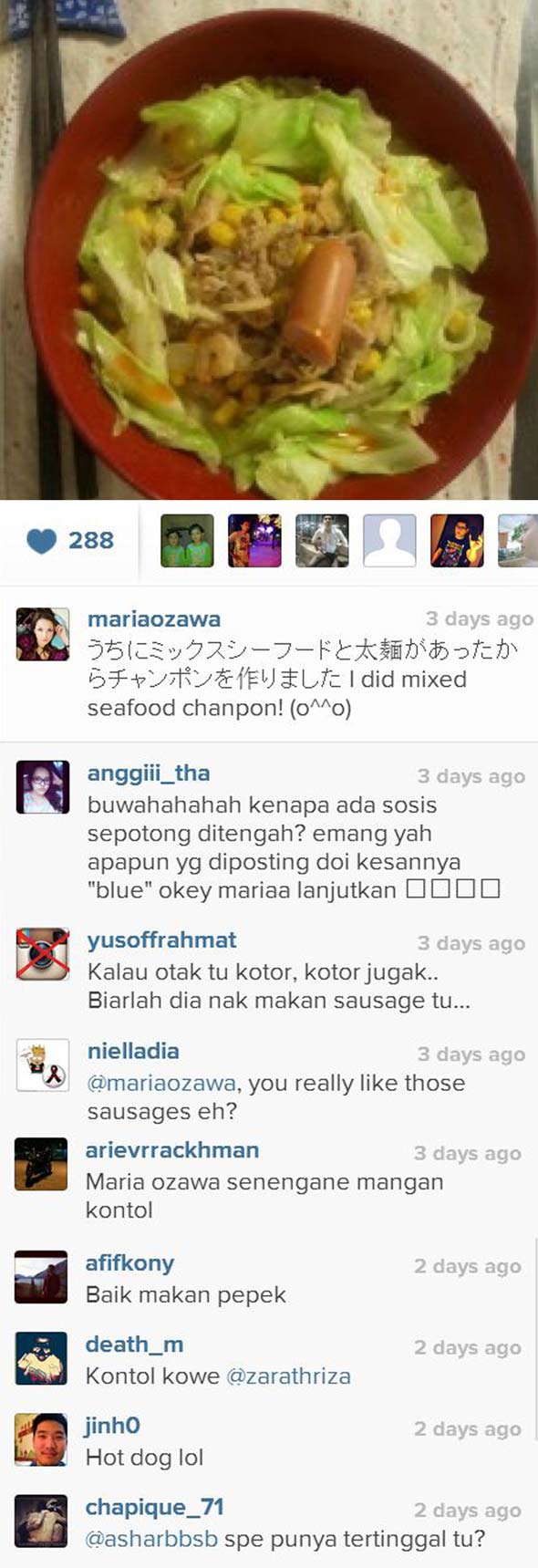 Malang Maria Ozawa, gambar makanan beliau di Instagram pun boleh menjadi isu lucah!